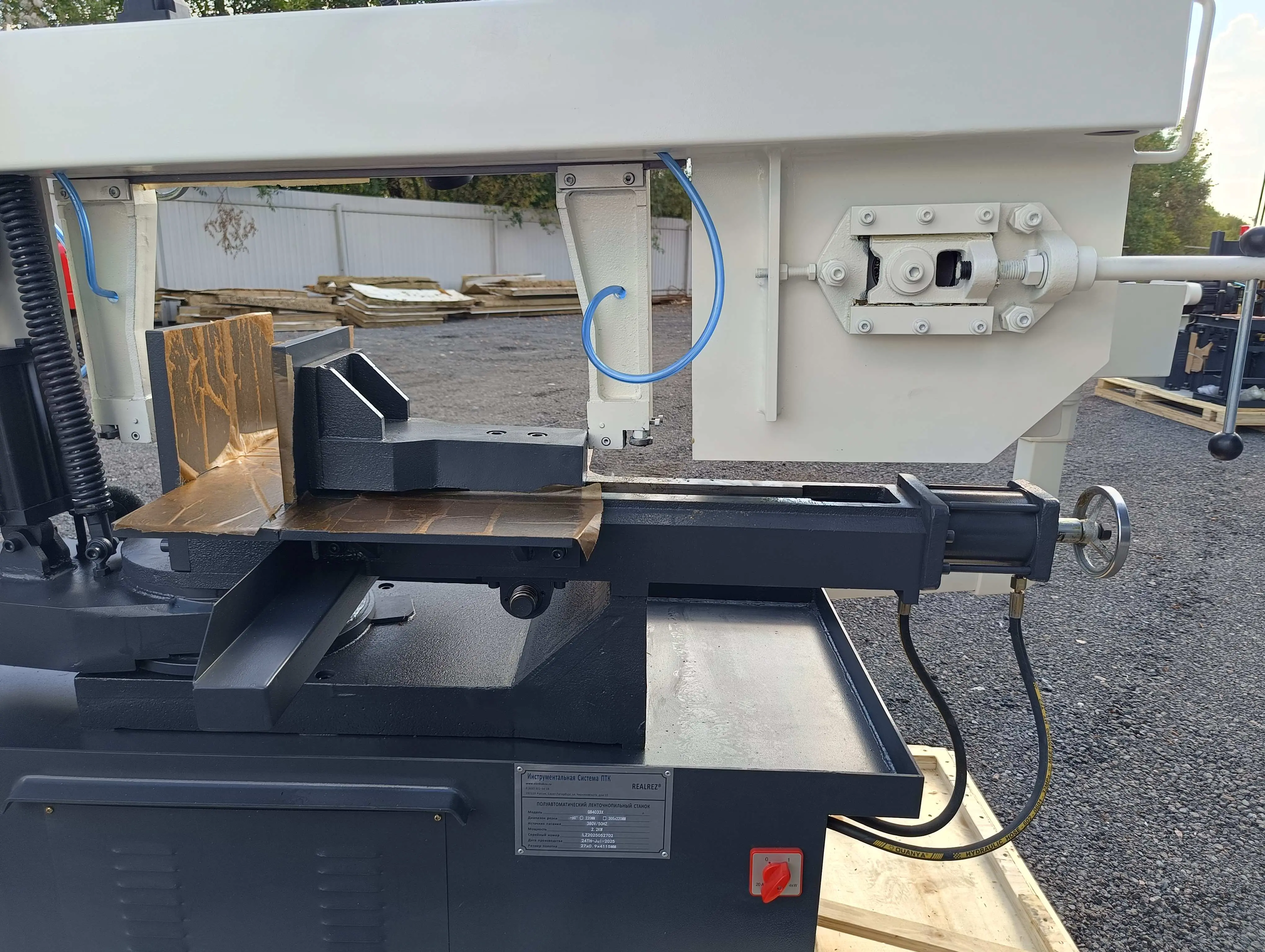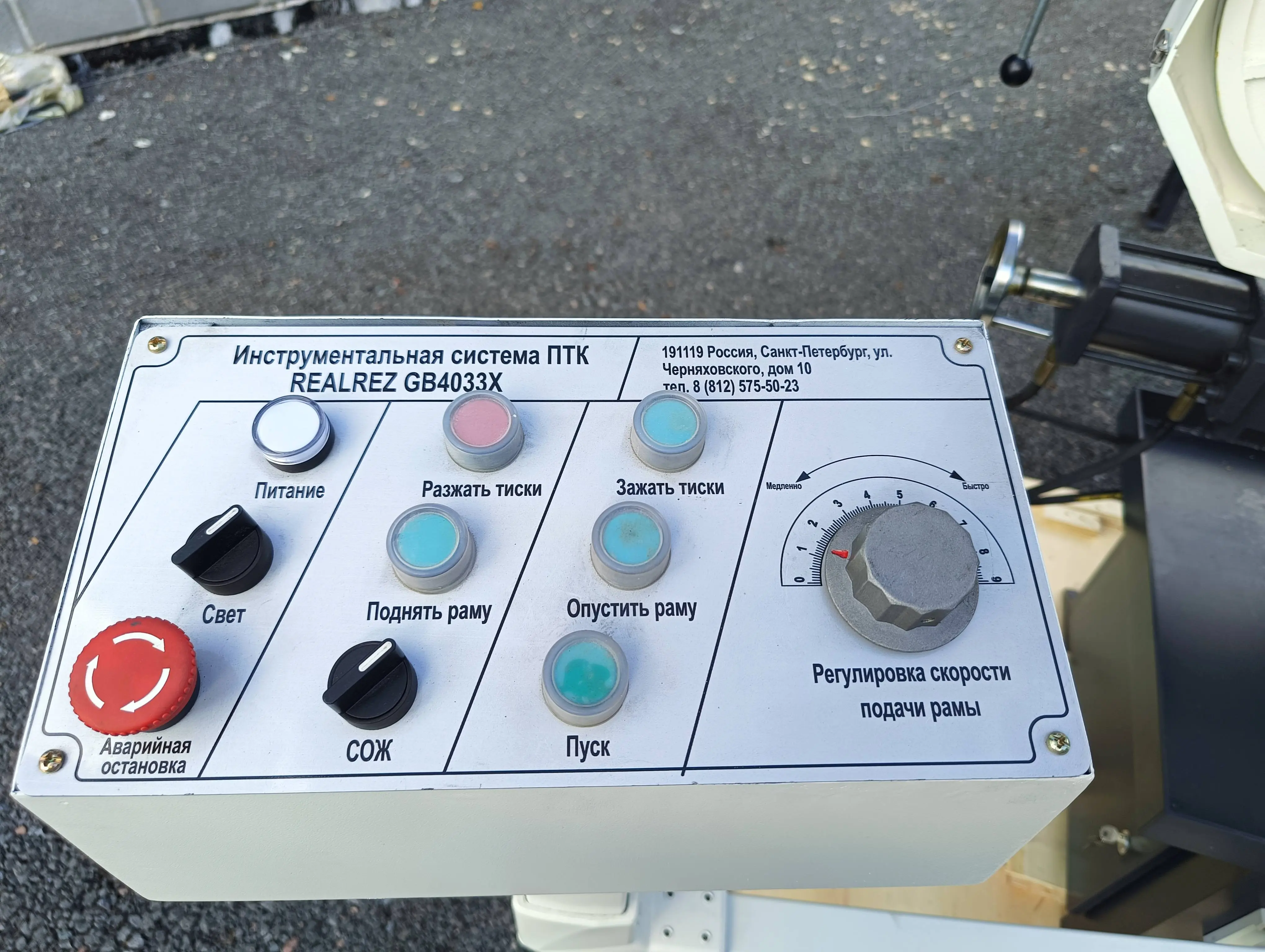 По окончании реза рама станка поднимается на заданную высоту. Гидравлический привод тисков надежно зафиксирует заготовку. Станок ленточнопильный REALREZ GB4033X предназначен для распиловки сплошных заготовок и профилей из металла. Массивная конструкция станка позволяет производить распиловку тяжелых сплошных материалов без вибраций. Поворотная рама станка обеспечивает угловую резку до 60 градусов. Панель управления обеспечивает удобное управление станком.